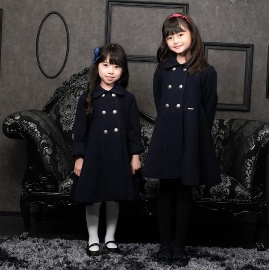 21AWのフレアコートは親子リンクもできて、お教室にも着られるハッピーネイビー♪