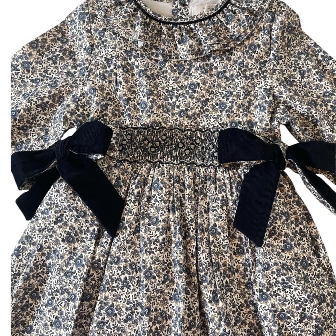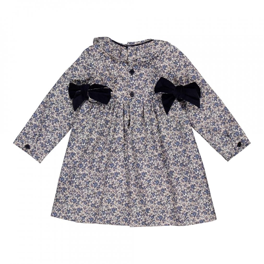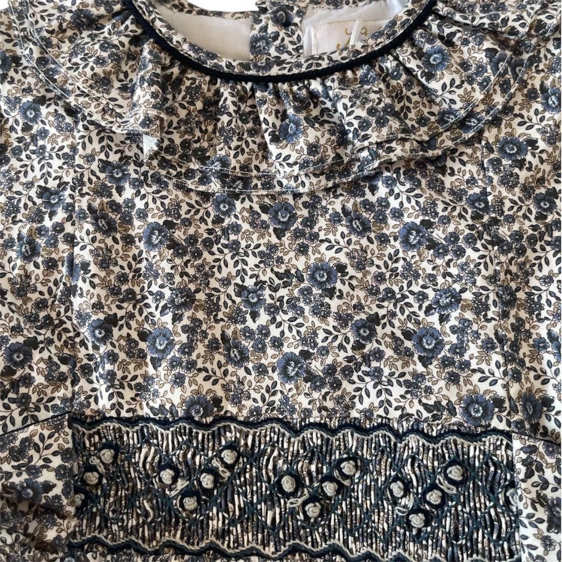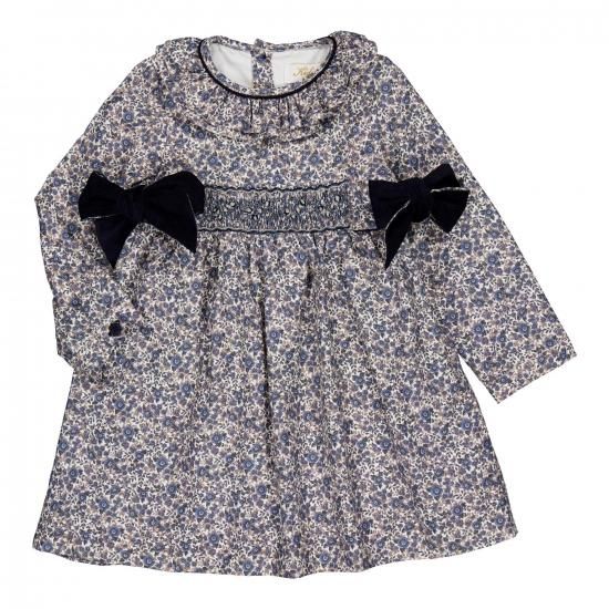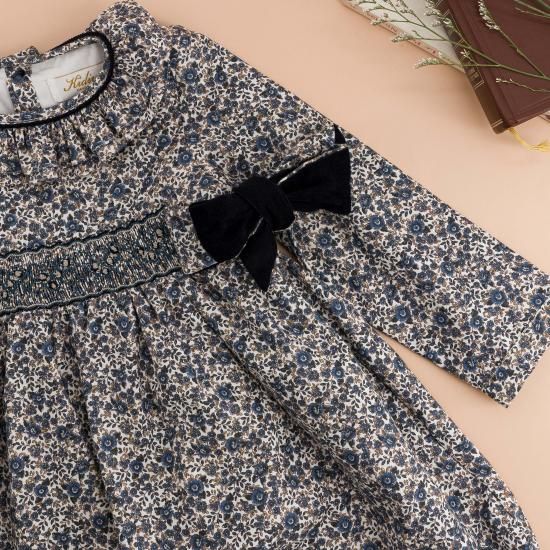 フランス Kidiwi キディウィ ネイビーブルーお花柄 サイドリボン Adriana スモッキングワンピース