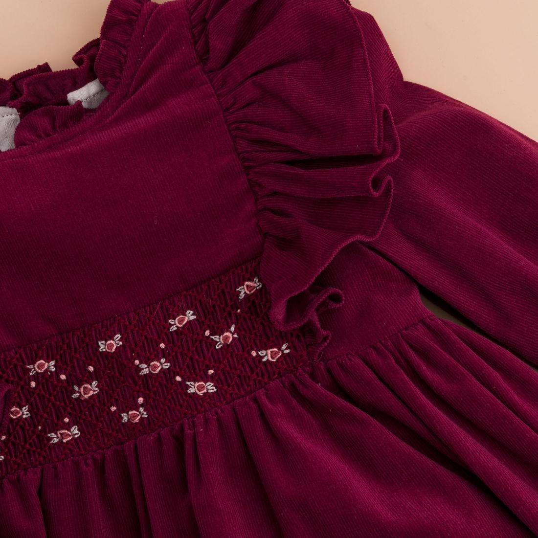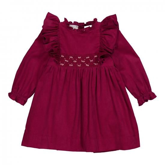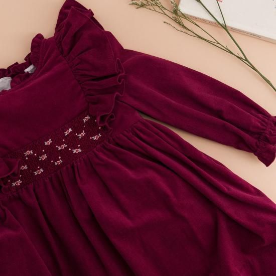 フランス Kidiwi キディウィ バーガンディ コーデュロイ Enola スモッキングワンピース