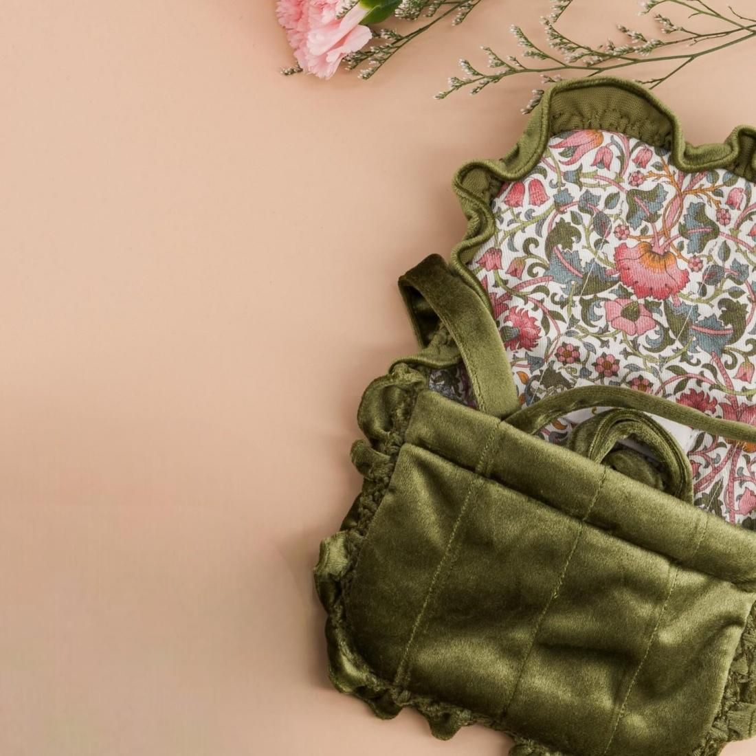 フランス Kidiwi キディウィ グリーン ベルベット スモッキング ポシェット