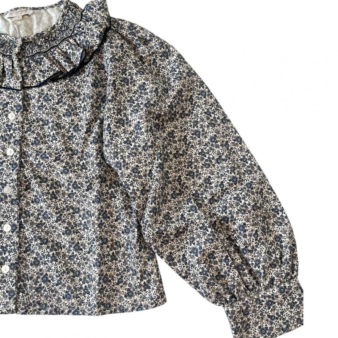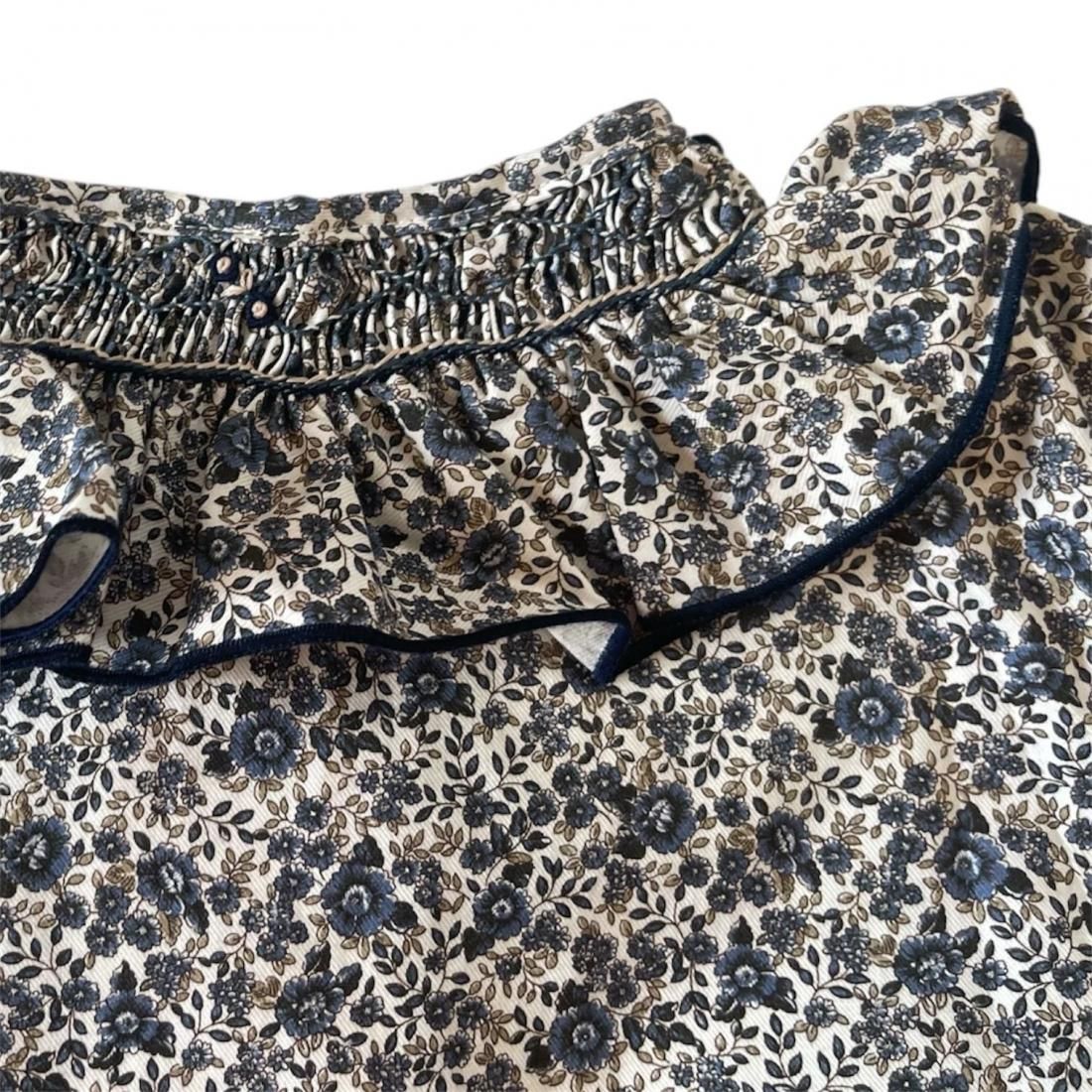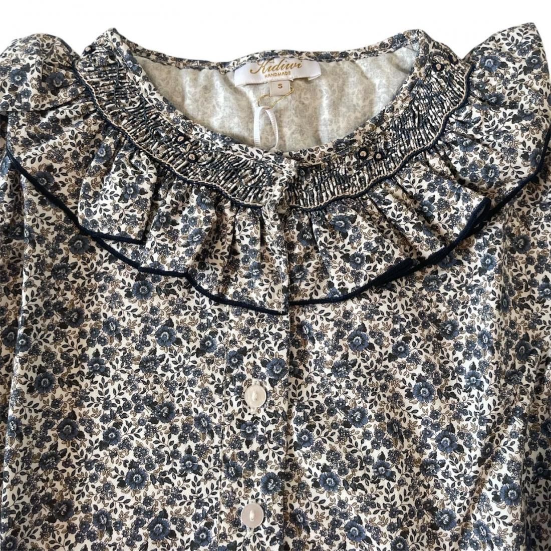 フランス Kidiwi キディウィ ネイビーブルーお花柄 大人 スモッキングブラウス Adeline