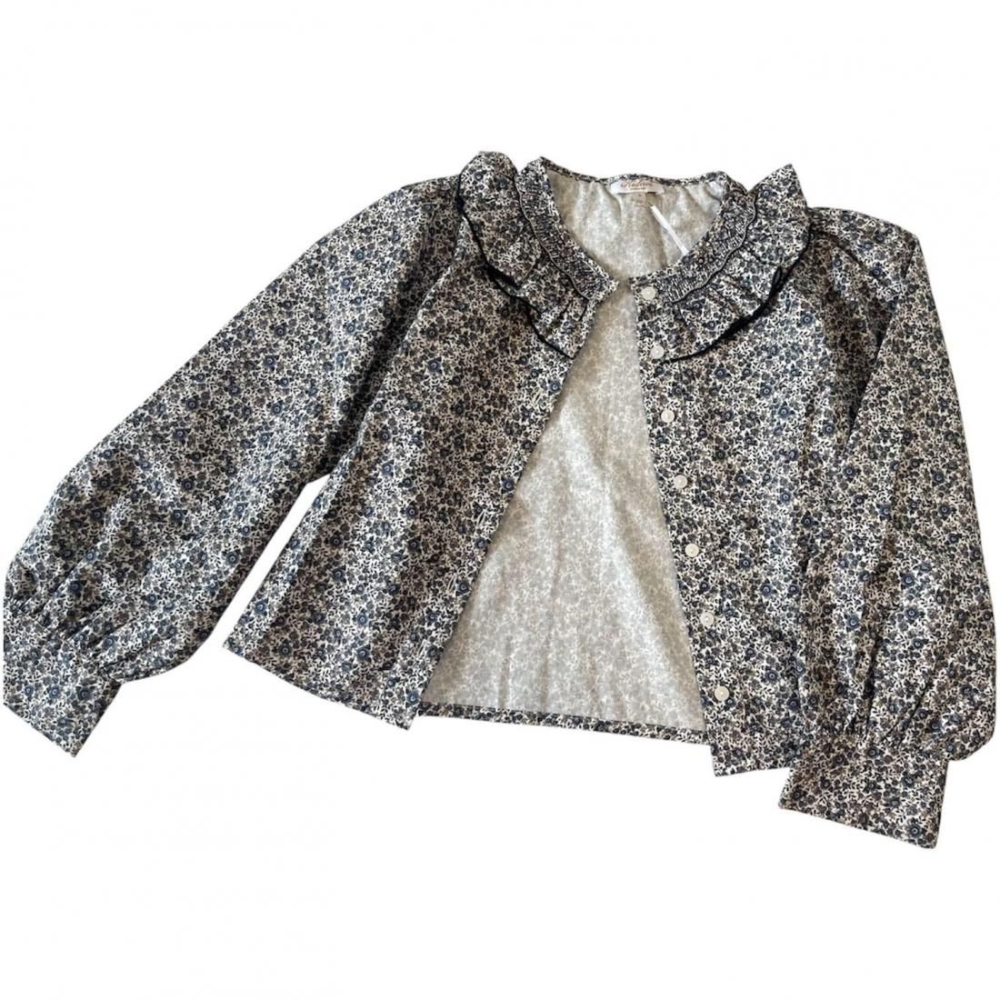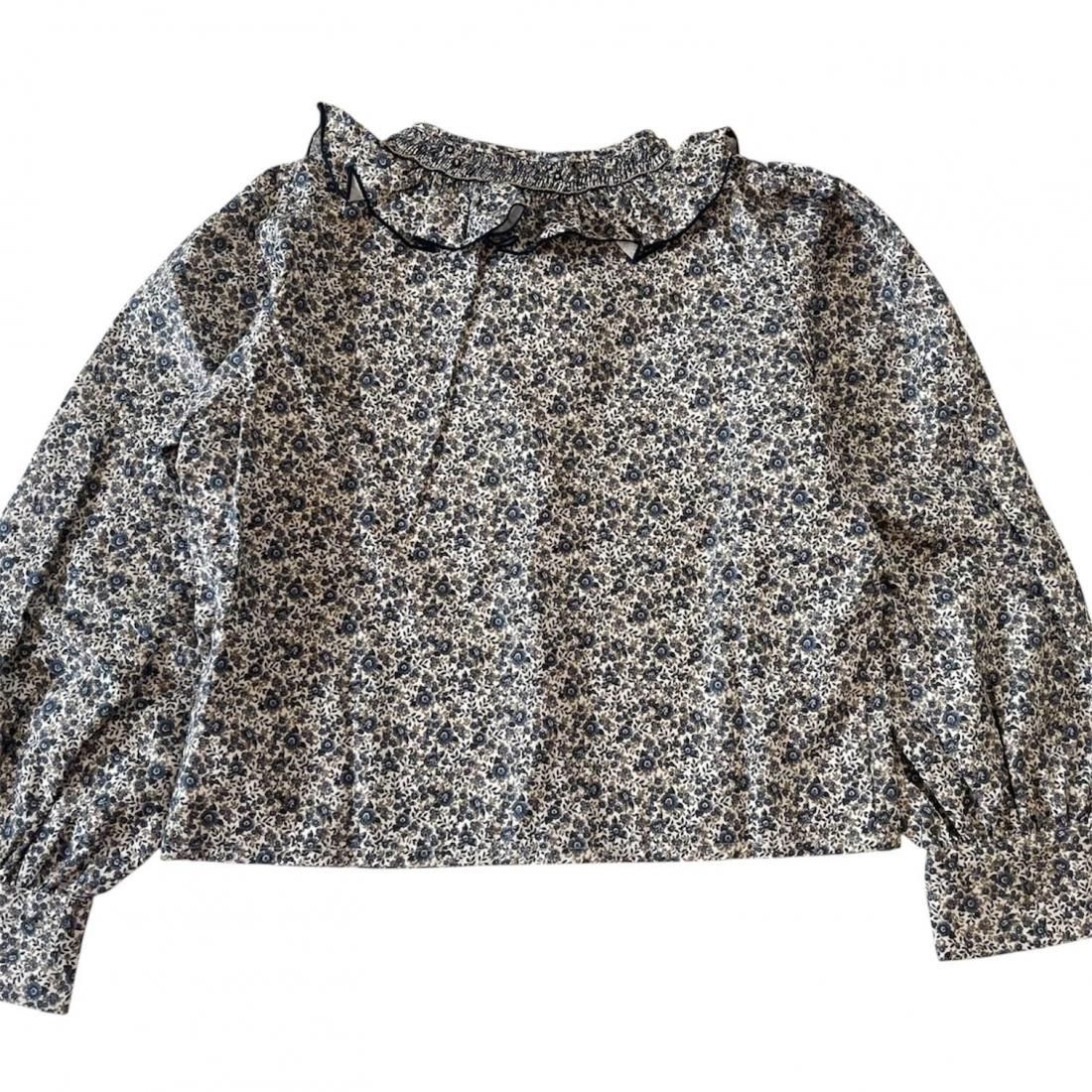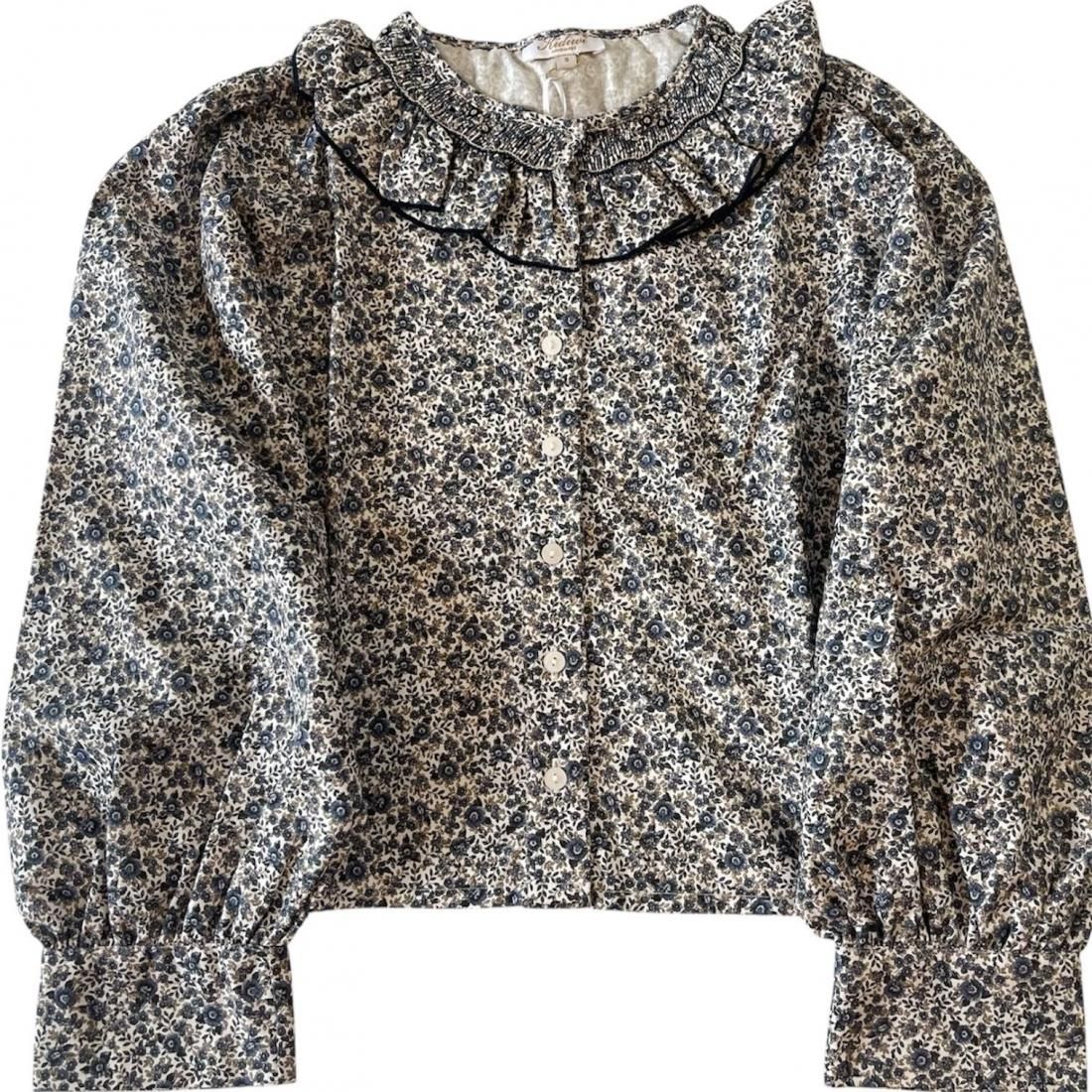 フランス Kidiwi キディウィ ネイビーブルーお花柄 大人 スモッキングブラウス Adeline